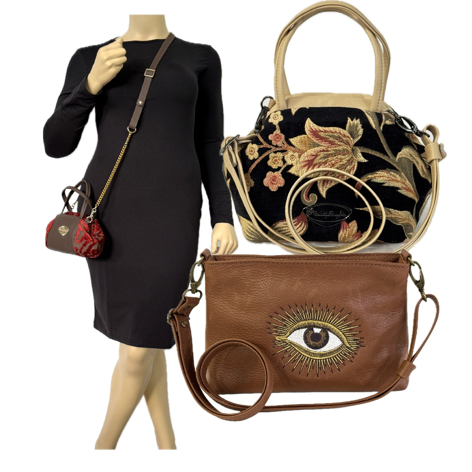 Experience the perfect blend of style and practicality with our exclusive collection of handcrafted handbags. Each unique piece is thoughtfully designed to cater to the vibrant lifestyles of modern women. Our range includes beautifully embroidered leather and tapestry totes, crossbody bags, satchels, and hobo shoulder bags, each crafted to seamlessly integrate functionality into your daily routine.