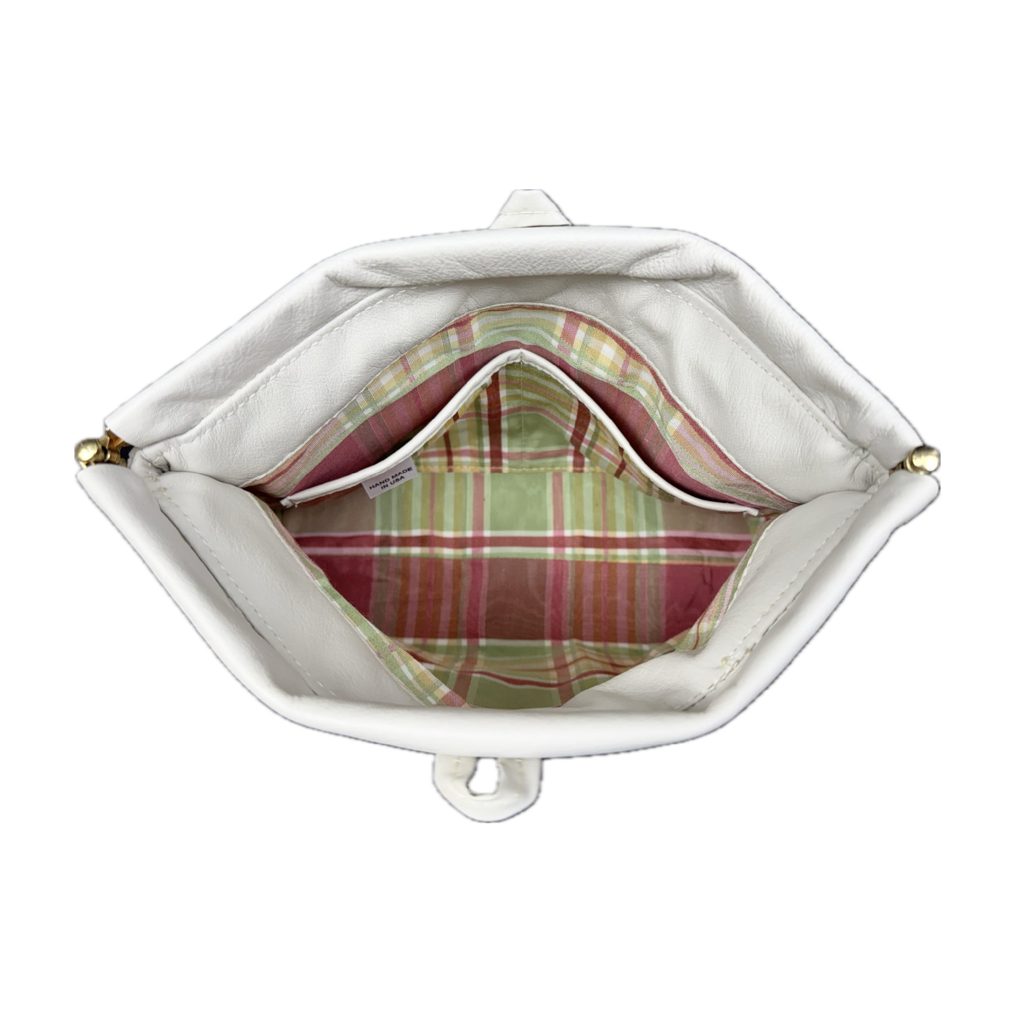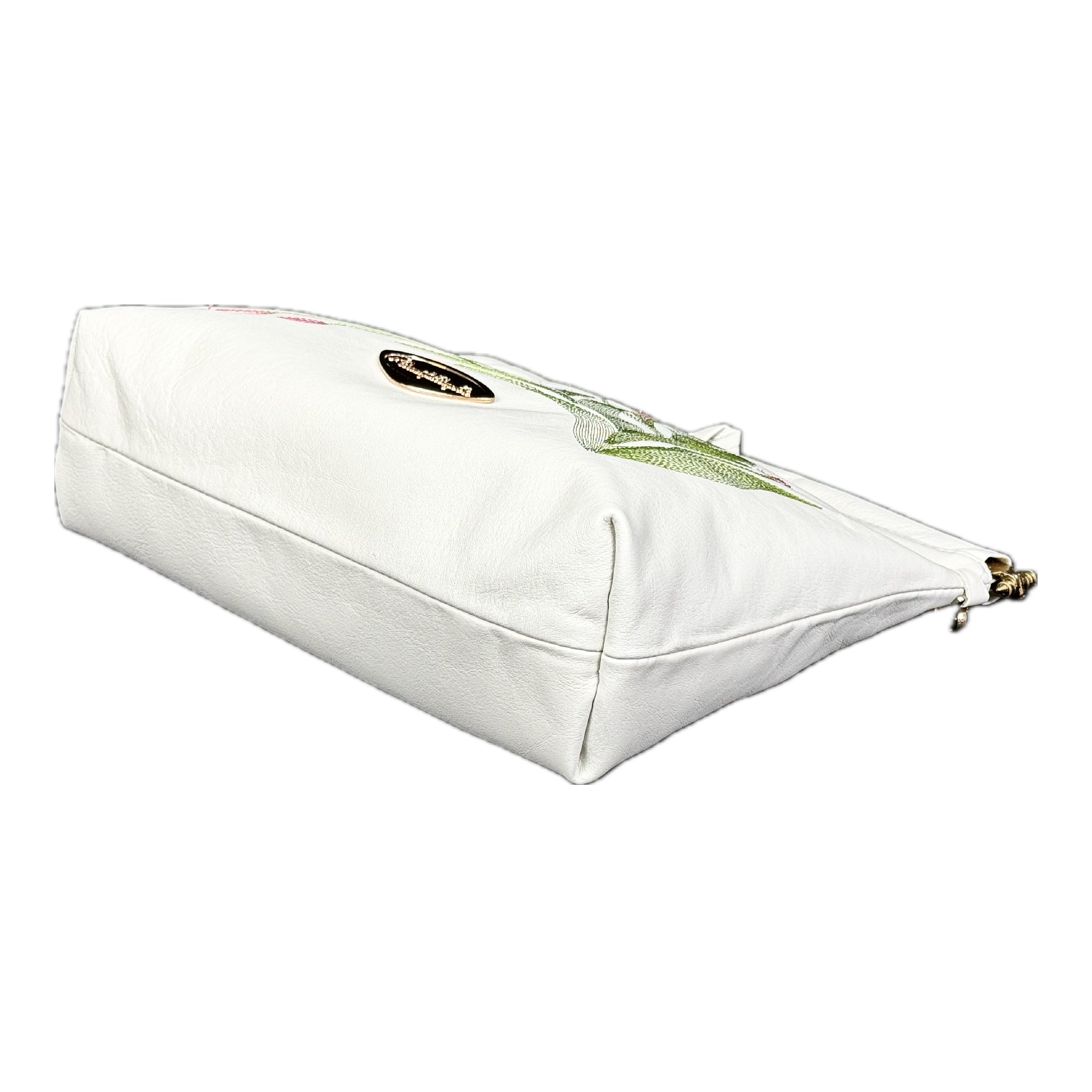 The exterior is crafted from full-grain cowhide leather in "Bone"—a refined, neutral off-white with a subtle gray undertone that allows the colors of the garden to pop.